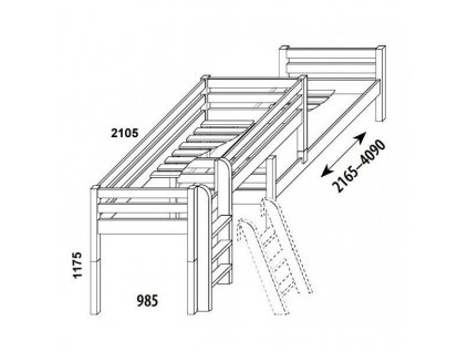 - Prodloužené jednolůžka s bočním čelem 100x210cm