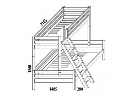 - Prodloužené jednolůžka se třemi čely 140x210 cm