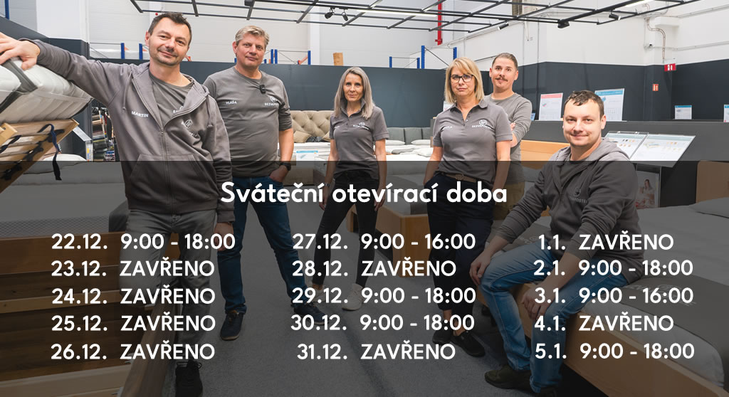 Rádi vám zodpovíme veškeré dotazy a poradíme jak vybrat novu postel nebo kvalitní matraci. U nás naleznete vynikající zákaznický servis. Každý, kdo k nám zavolá, může se spokojeným úsměvem na tváři očekávat, že na cestě je nová skvělá postel nebo matrace.