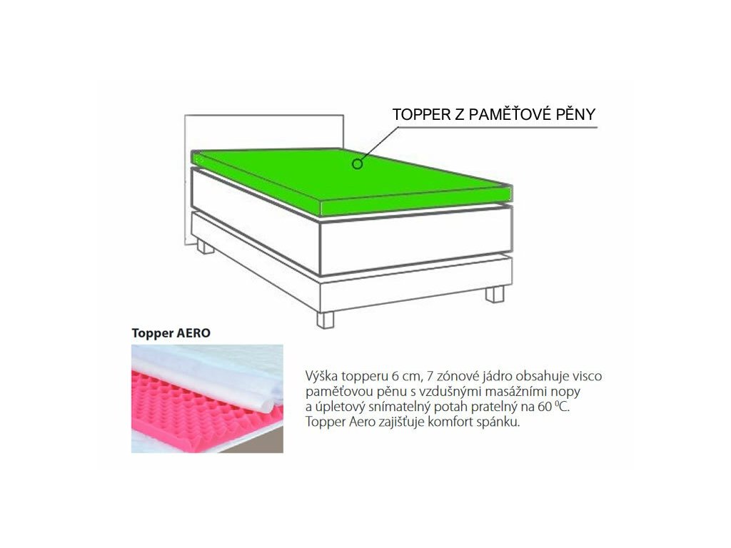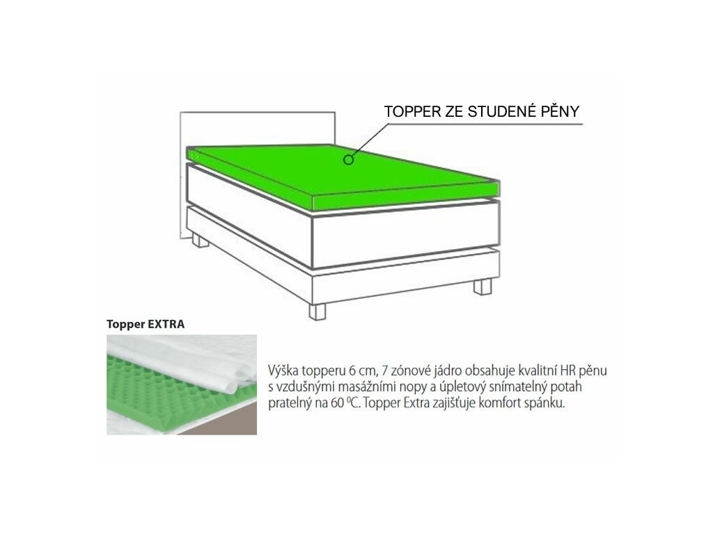 Volitelnou součástí postele je také horní Topper o výšce ca 6cm, tvořený vrstvou kvalitní HR studené pěny.