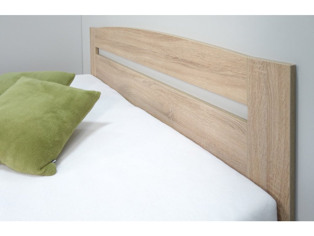 Rám postele Maria je vyroben z odolných laminovaných desek o tloušťce 2,5 cm, což zajišťuje dostatečnou pevnost a odolnost. Úložný prostor je vyroben z lamina o tloušťce 18 mm a je k dispozici v několika odstínech dřeva, včetně oblíbených dezénů jako dub sonoma, dub zlatý, bíla nebo ořech. Na prezentaci je postel vyobrazena v odstínu Dub sonoma.