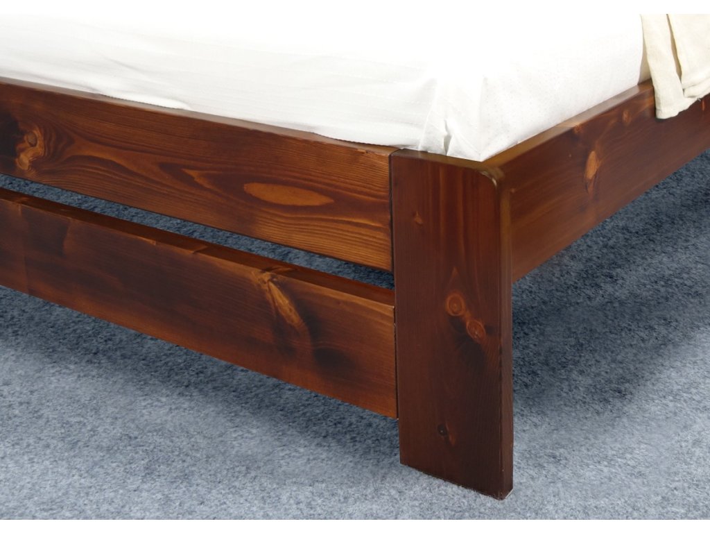 Postel Justina 90x200 cm je vyrobena z masivního smrku s povrchovou úpravou přírodního laku. Mimo přírodní provedení je k dispozici na výběr široká paleta odstínů moření. Vybírat můžete z barevného provedení - olše, třešeň, ořech, wenge a bílá. Na obrázku je postel Justina v odstínu ořech. V případě zájmu vám můžeme zdarma poštou zaslat vzorek vybraného barevného provedení – viz informace níže.