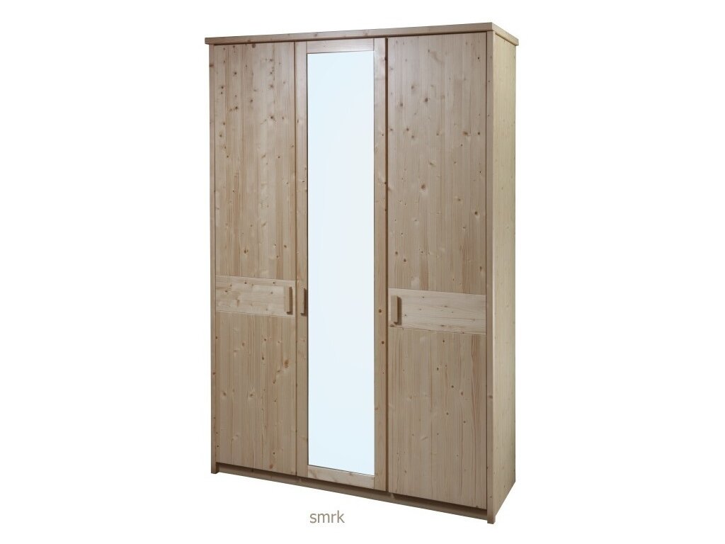 Šatní skříň ENNA se zrcadlem, je vyrobena ze smrkového masivního dřeva v kombinací s laminem. Vnitřní vybavení skříně tvoří šatní tyč a lze také dokoupit police zvlášť.